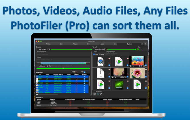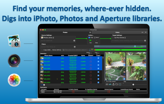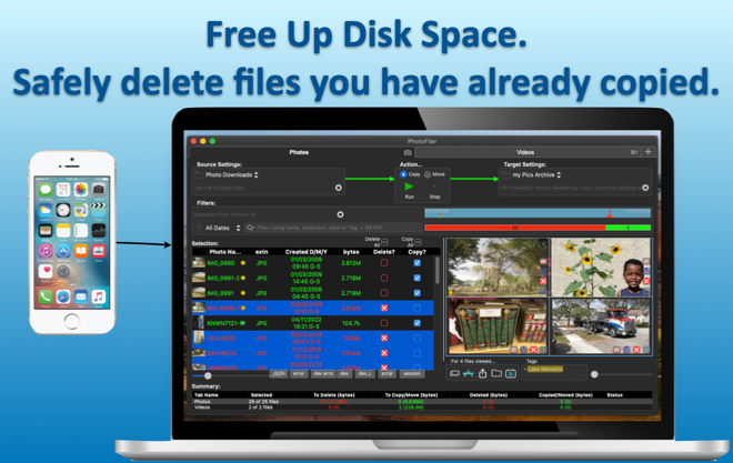 PhotoFiler™ is designed to quickly recover space on your hard disk, archive your memories in a logical store, label and find files quickly using Tags.